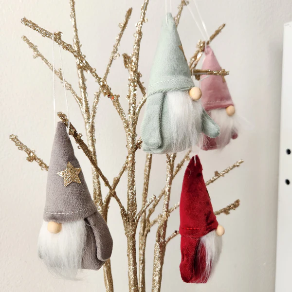 4 Hanging Velvet Gnomes