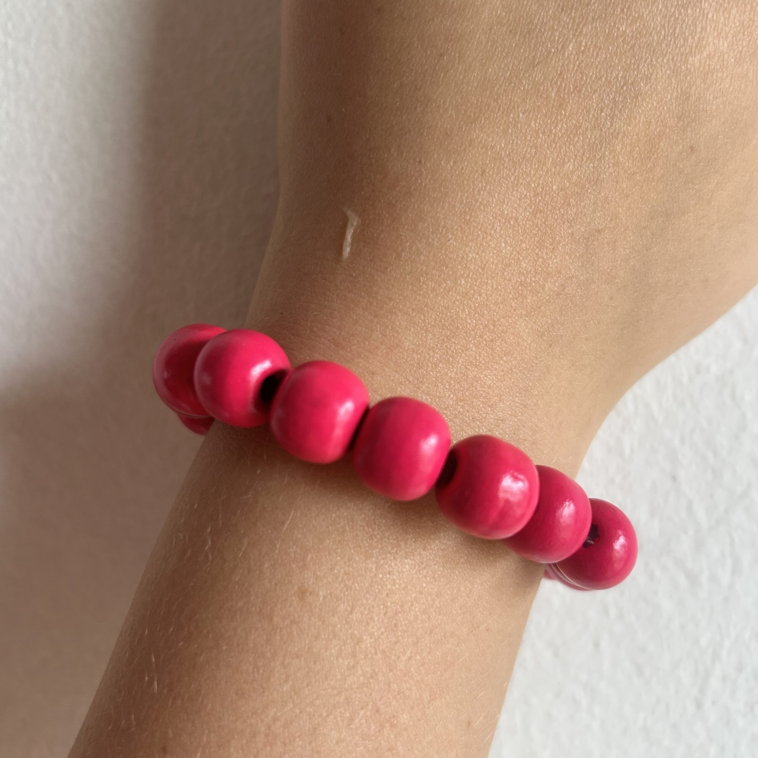 / Bright Pink Wooden Beaded Bracelet