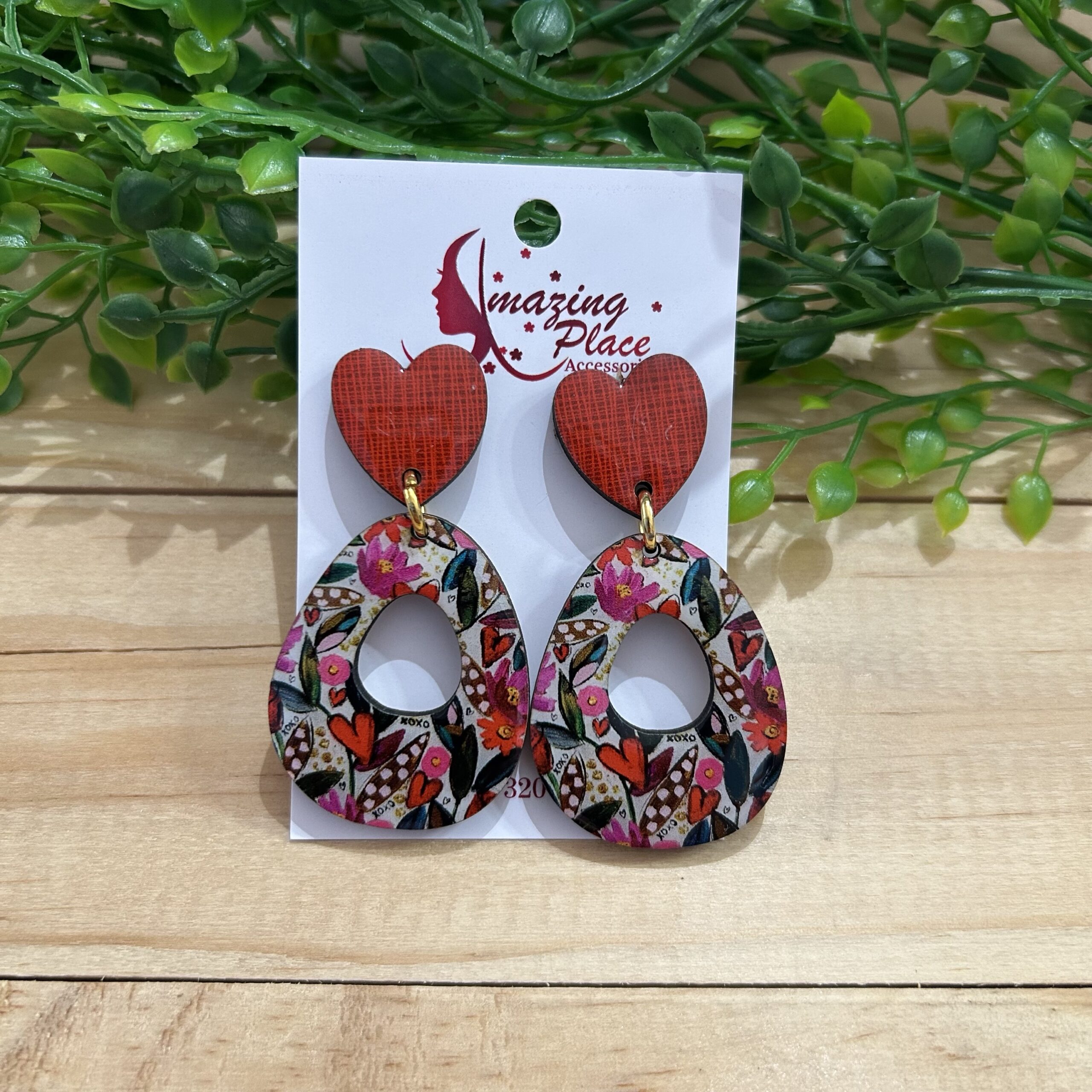 / Floral Red Heart Earrings