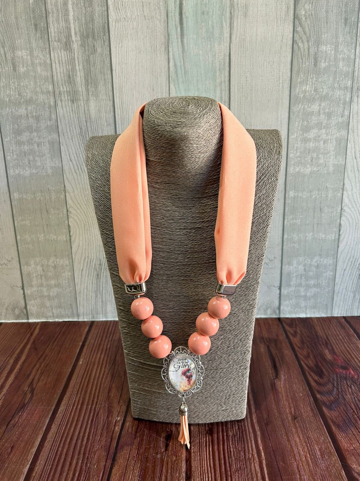 / Peach scarf necklace